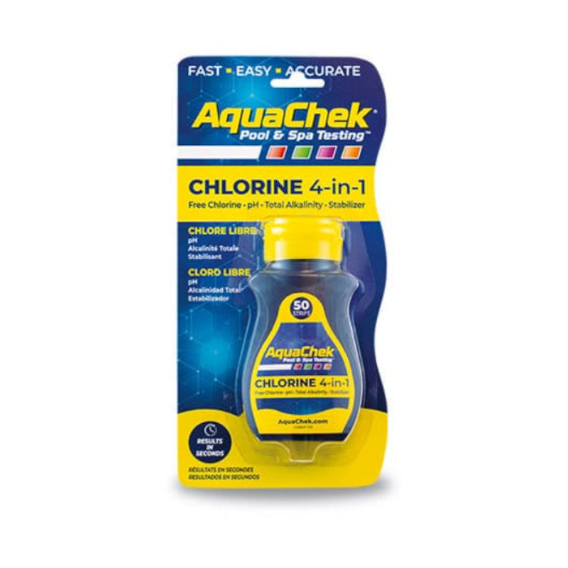 - Tests for four essentials: Free Chlorine, pH, Total Alkalinity, and Stabilizer (Cyanuric Acid)
