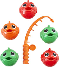 - Set includes: 1 fishing pole, 5 friendly sinking fish