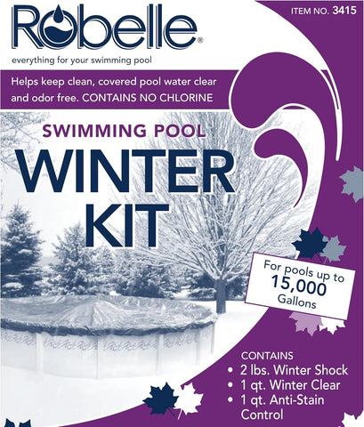 Get the most effortless pool closing experience with the Robelle Winter Closing Kit, expertly crafted for pools up to 15,000 gallons. This premium kit contains all the chemicals and instructions you need for a crystal-clear and odor-free pool throughout winter, backed by more than 50 years of trusted performance.